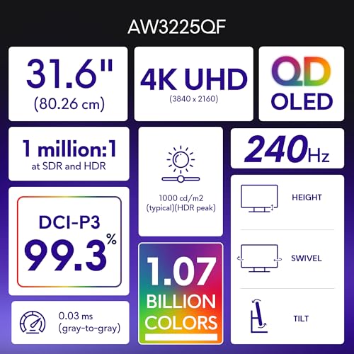 Especificação: Monitor Gamer Alienware 32″ 4K 240Hz OLED – AW3225QF