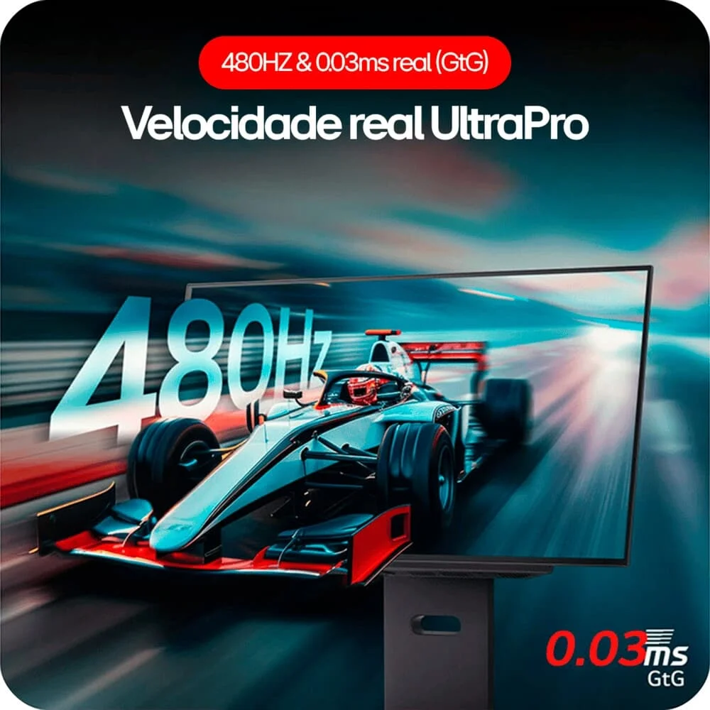 - Taxa de 480Hz e 0.03ms: Fluidez extrema e resposta instantânea, eliminando borrões em jogos competitivos.